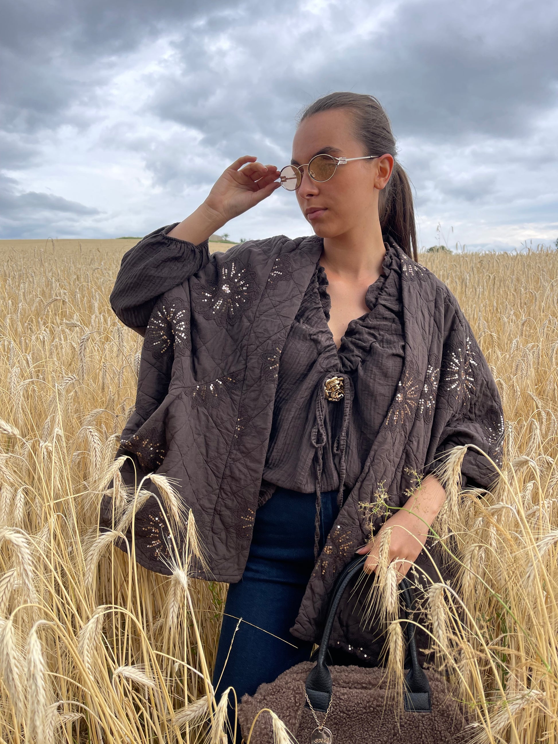 ÉLYA, une veste oversize à petites manches qui combine élégance et modernité.