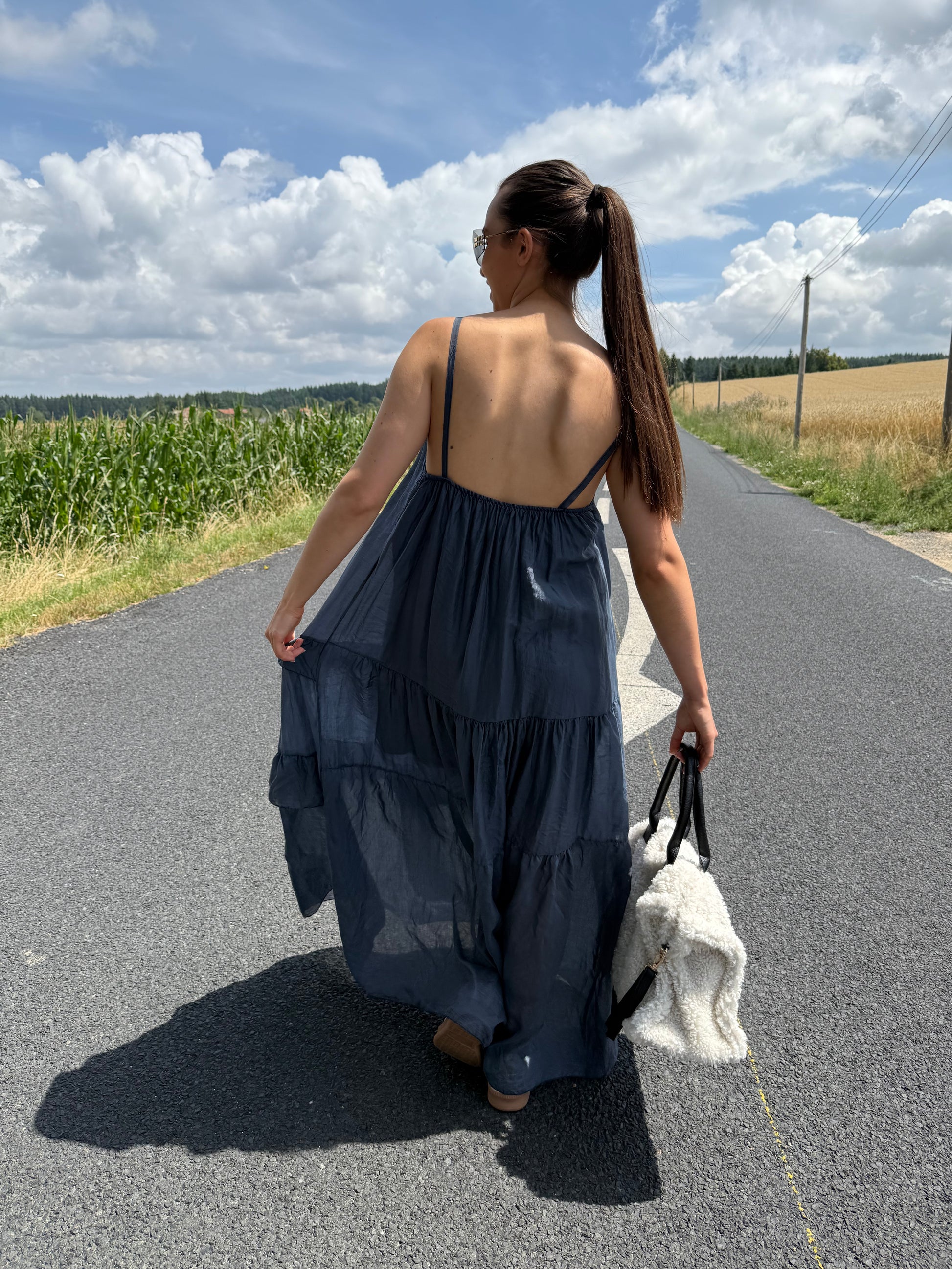 Le bleu marine lui donne ce côté chic facile à accessoiriser, que ce soit en balade, en vacances ou pour une soirée d’été.
