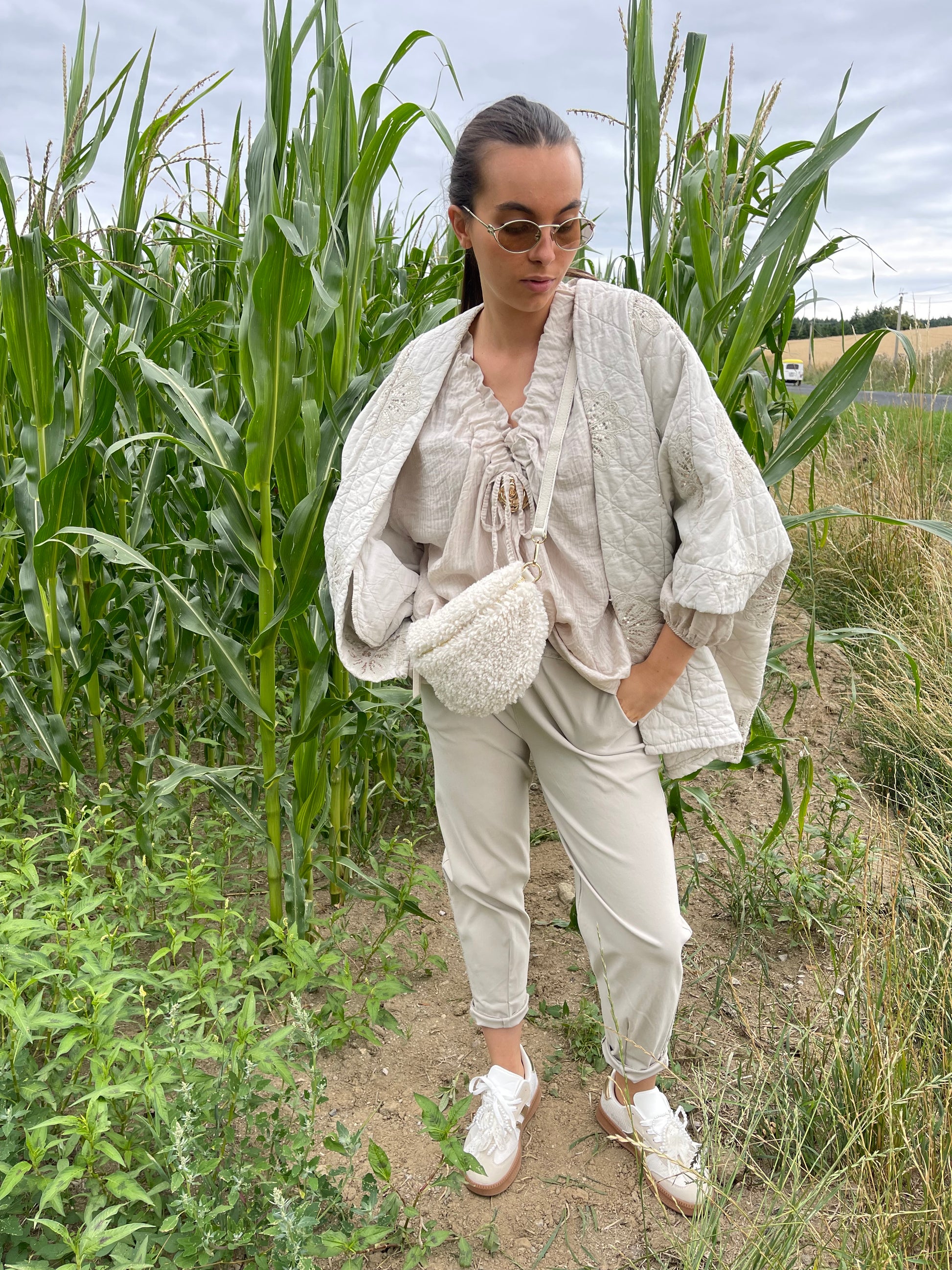 ROSALIE se distingue par sa coupe simple et confortable, parfaite pour toutes les occasions, et sa couleur beige chaleureuse.