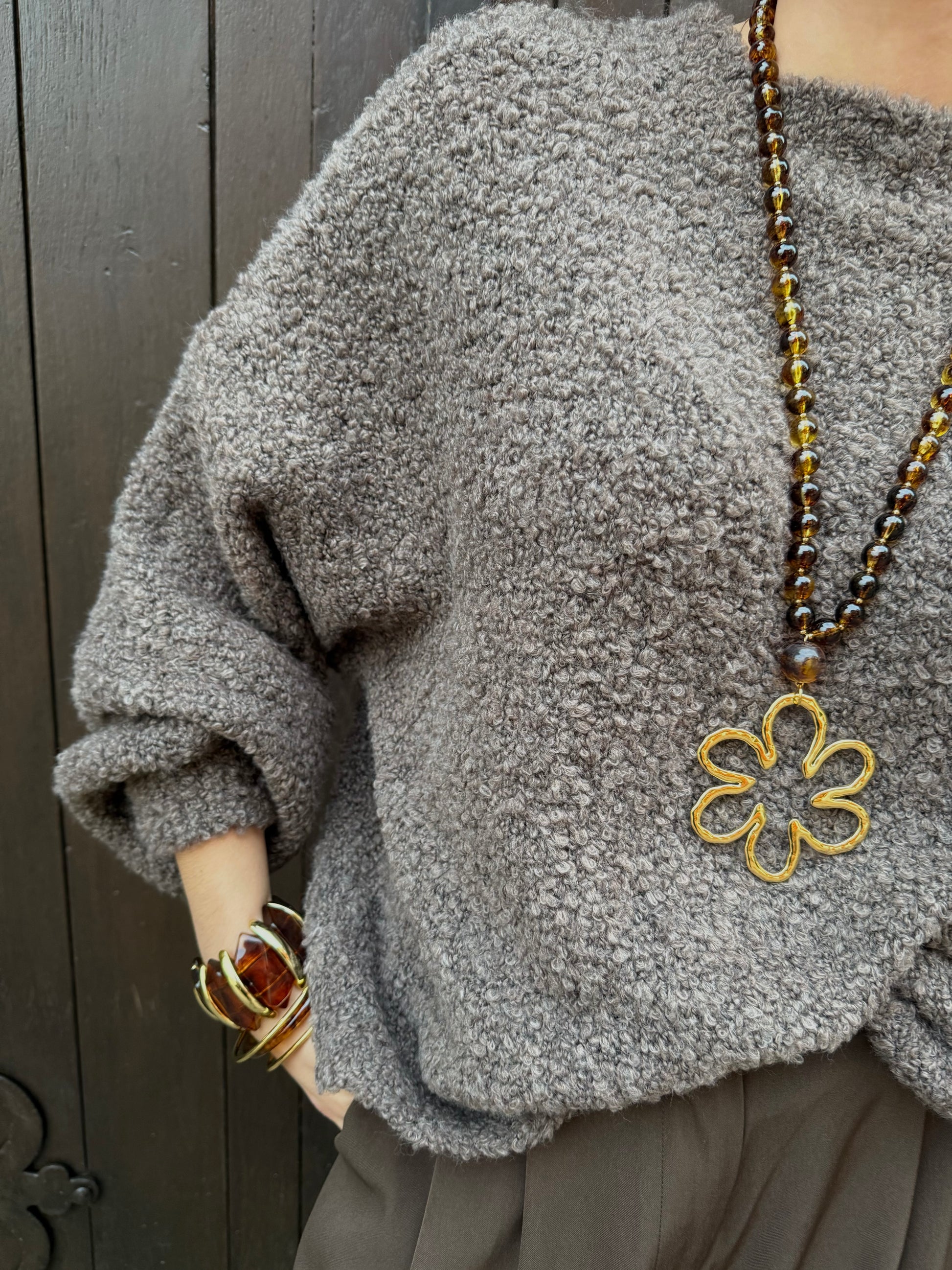 Le pull LOUISE est votre nouvel allié cocooning. Avec sa coupe large confortable et ses manches large resserrées aux poignets, il apporte une touche de style tout en douceur.