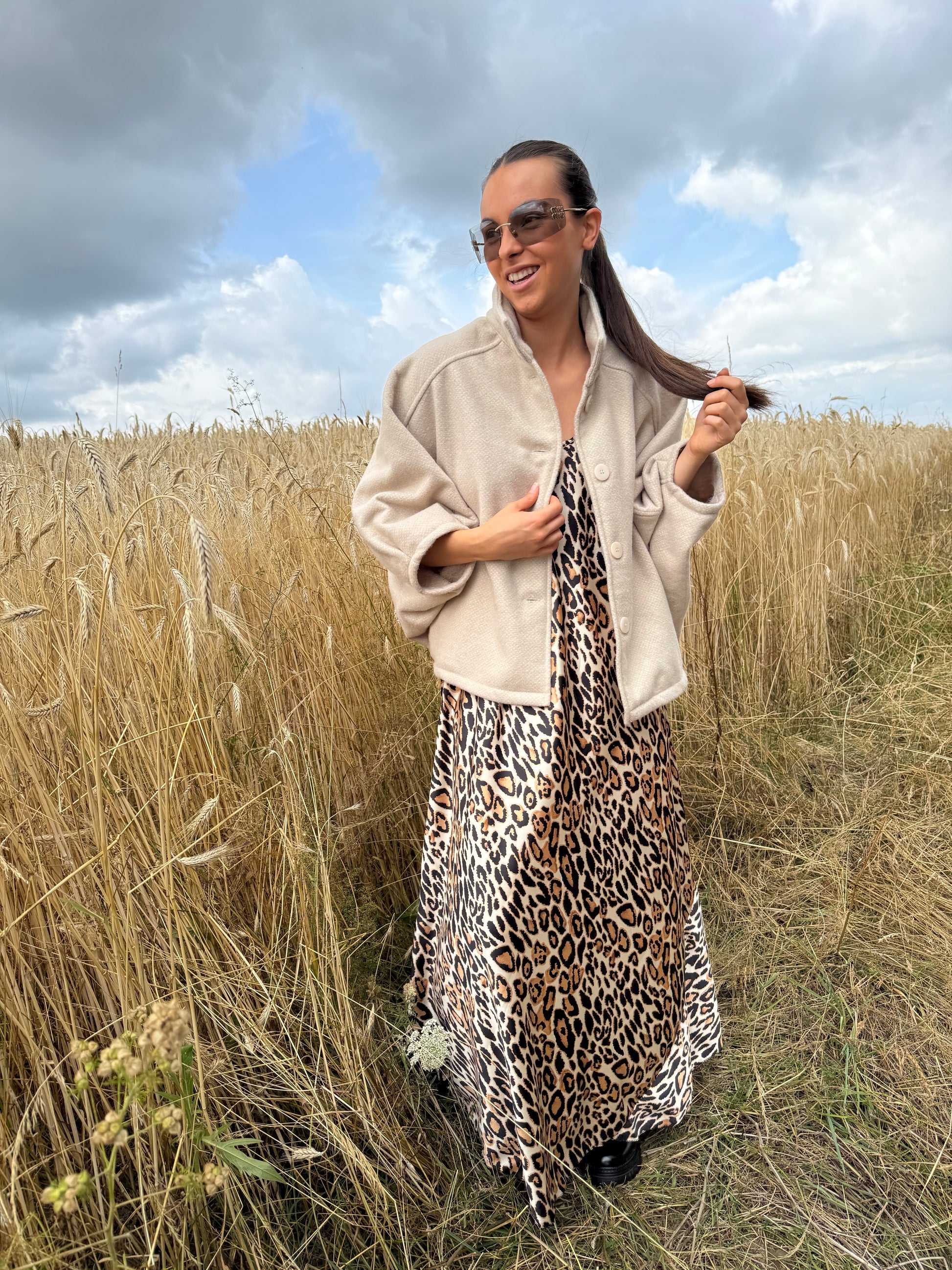 La couleur beige douce se marie avec tout, du jean brut à la robe fluide.