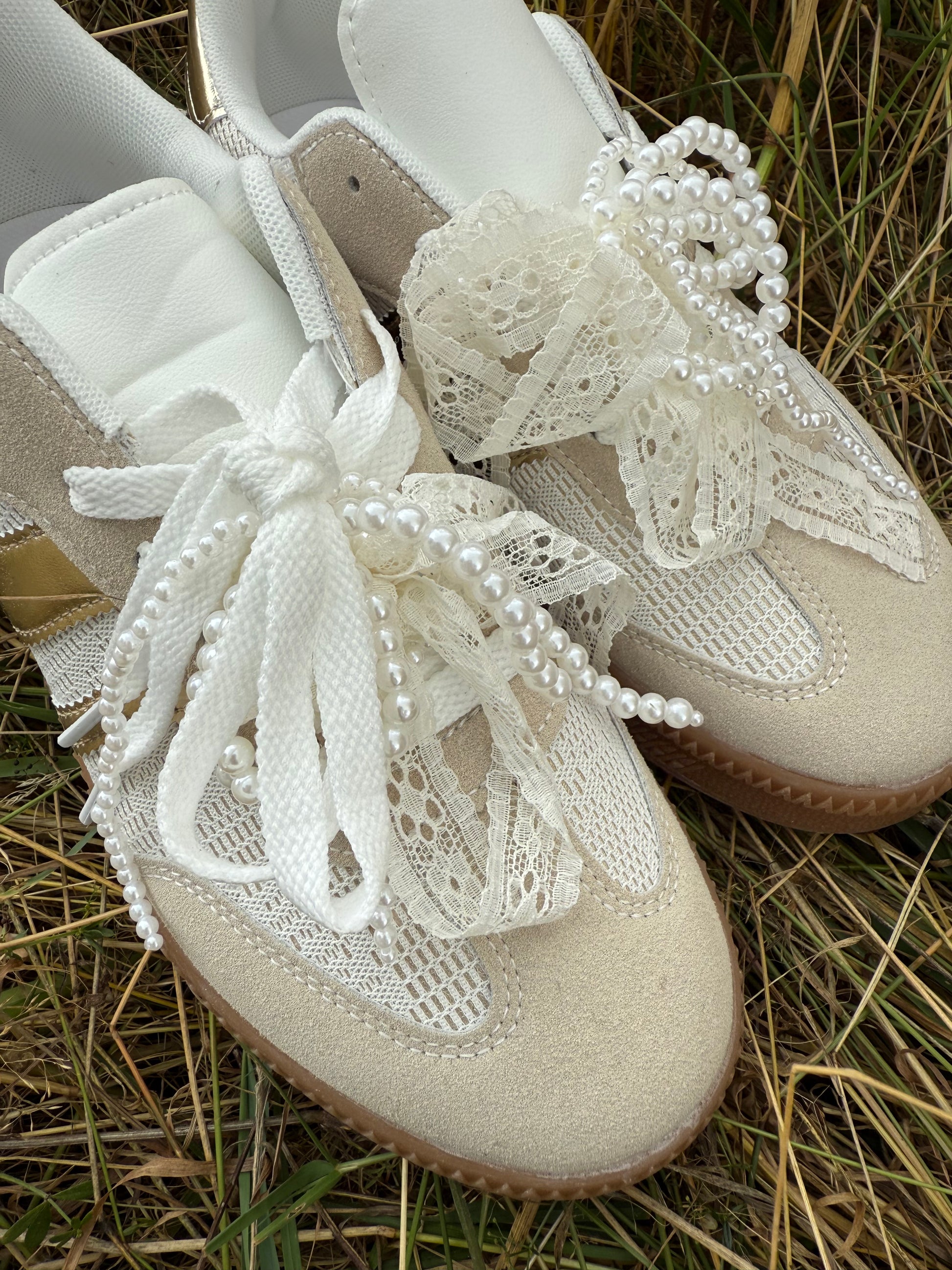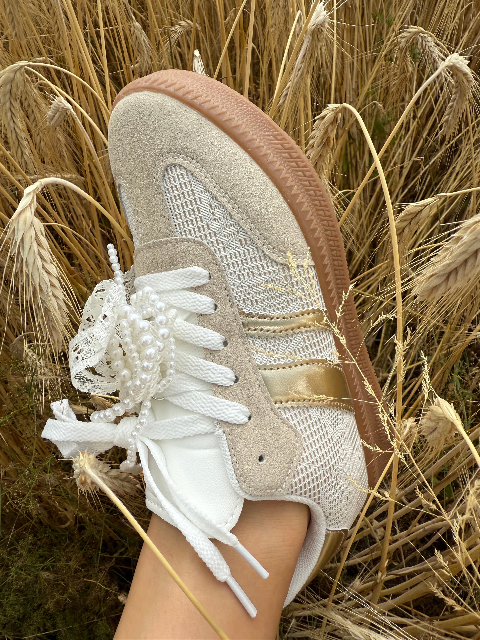 LUNARA, c’est l’élégance cachée dans une paire ultra confortable : des lacets en dentelle ornés de perles, un détail doré sur le côté et un bout légèrement ajouré pour la touche originale.