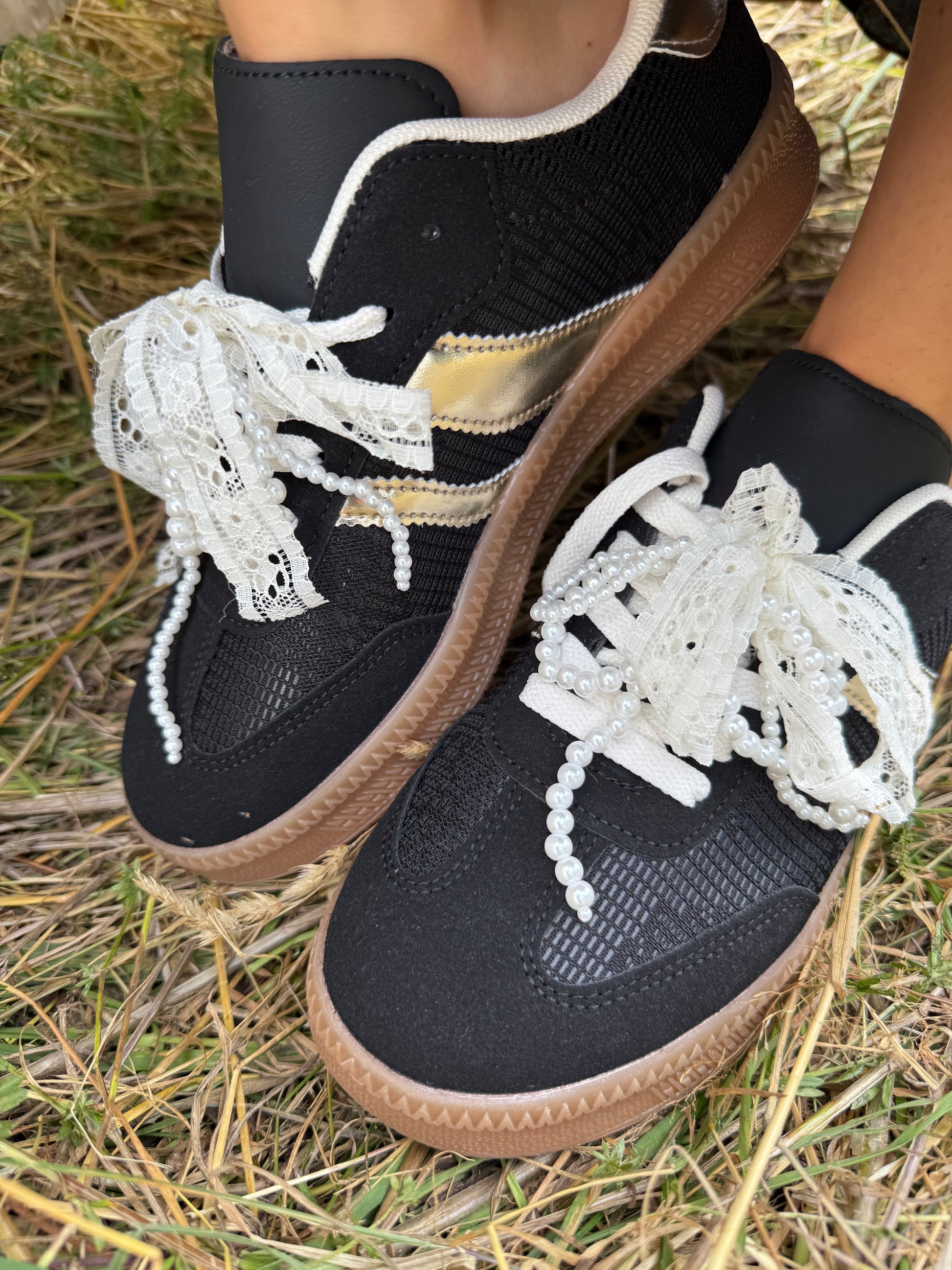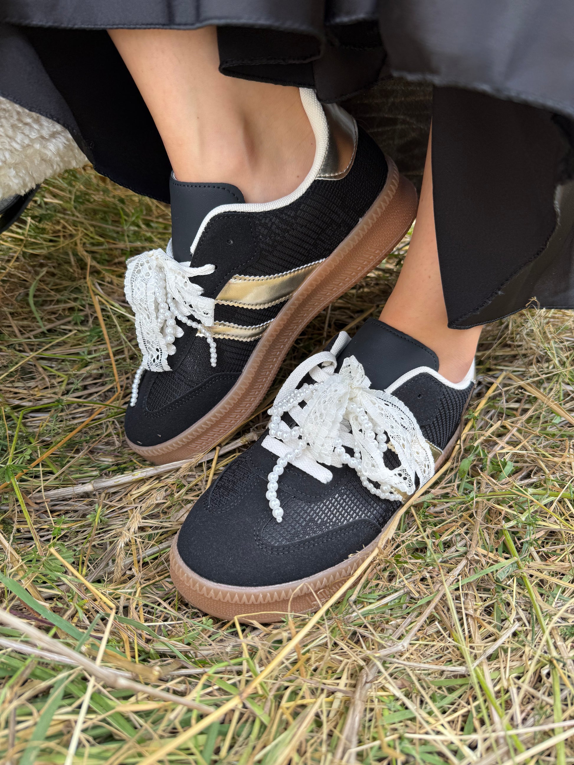LUNARA, c’est l’élégance cachée dans une paire ultra confortable : des lacets en dentelle ornés de perles, un détail doré sur le côté et un bout légèrement ajouré pour la touche originale.
